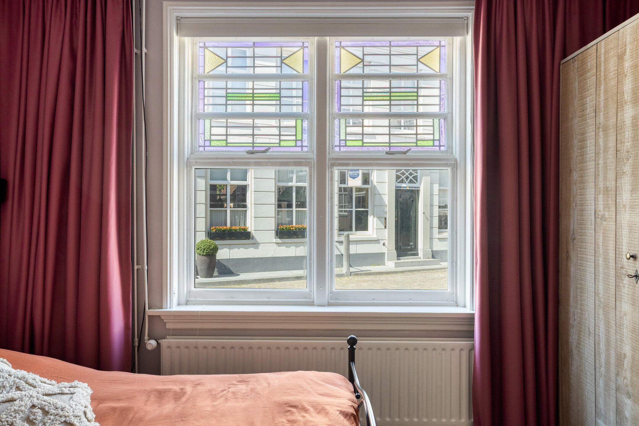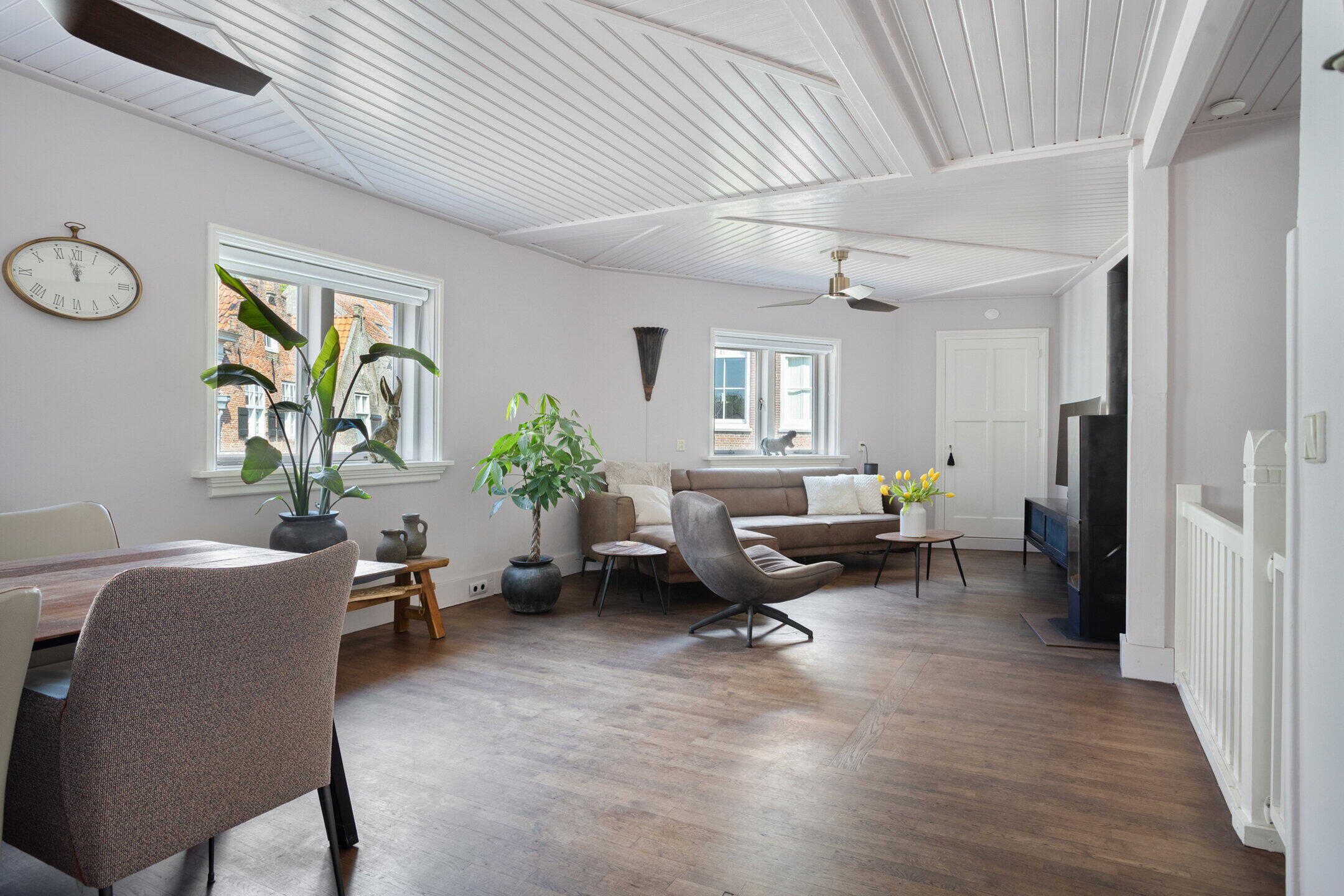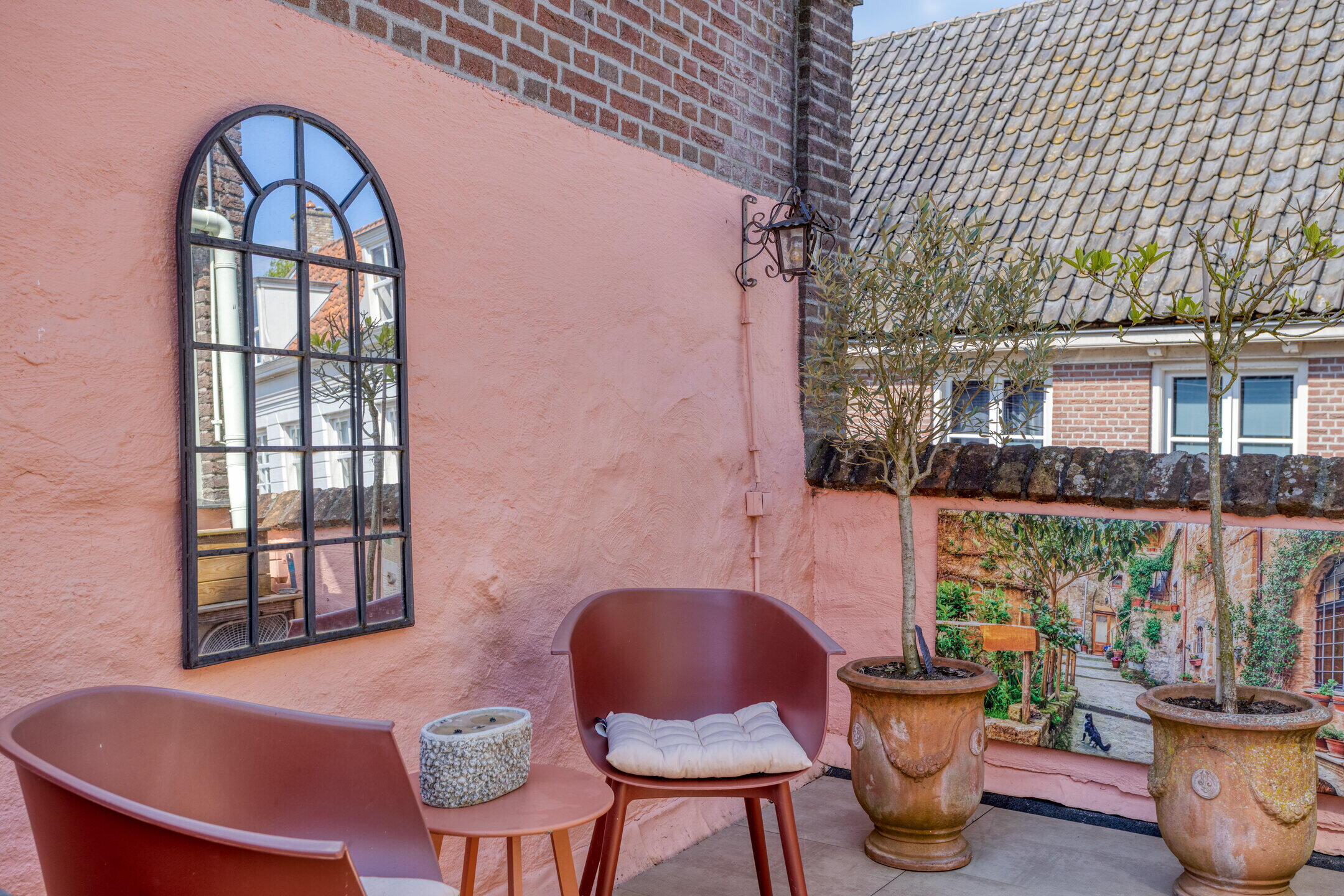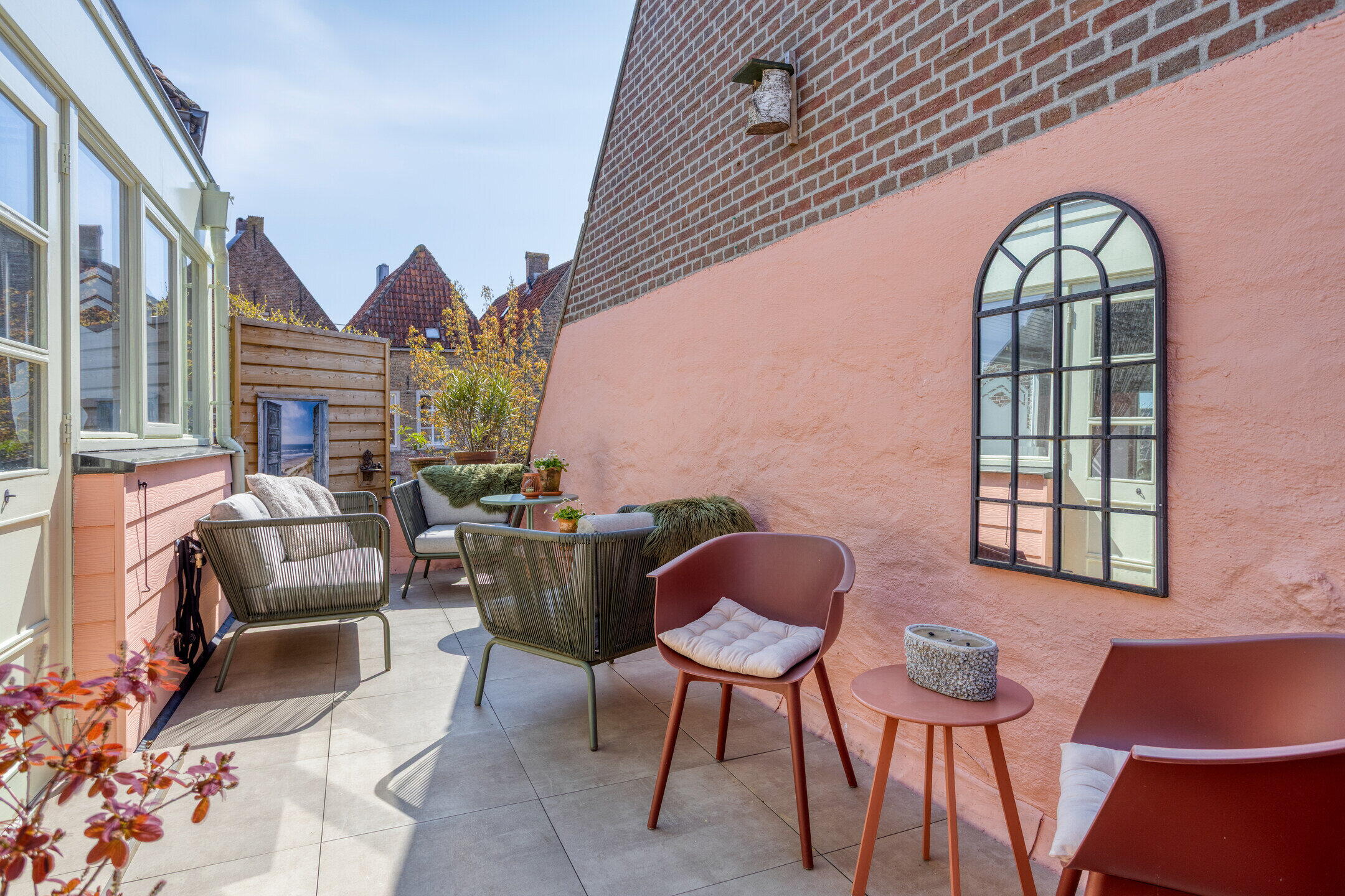 Het dakterras is een heerlijke, intieme plek met veel privacy. Hier geniet je van een kop koffie in de ochtendzon of een gezellige borrel op een zwoele zomeravond. Midden in de vesting, maar toch verrassend rustig. De afwerking met verdiepte-voeg van de gehele gevel kenmerkt de bijzondere bouwstijl van de Amsterdamse school.