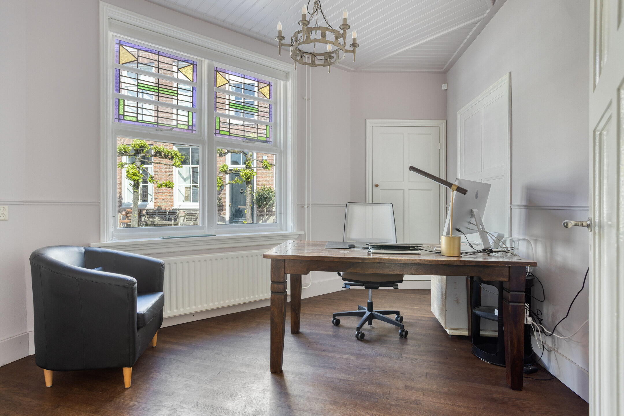 Stap binnen via de voordeur met glas-in-lood en laat je verrassen door de entree met terrazzo/spekvloer en de trapopgang naar de eerste verdieping. De sfeer van vroeger voel je hier direct. Aan de linkerzijde bevindt zich een multifunctionele kamer, ideaal als werkplek, slaapkamer of speelkamer. Authentieke details zoals de schouw met houtkachel (doet het!), paneeldeuren en houten vloer maken deze ruimte extra bijzonder.